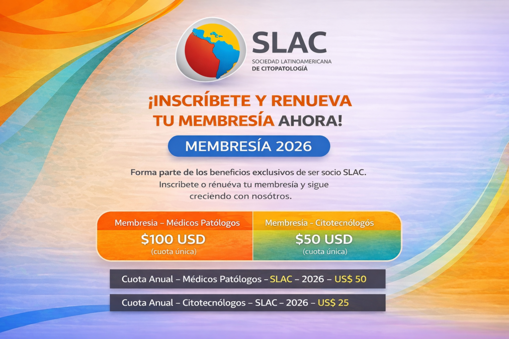 La Sociedad Latinoamericana de Citopatología (SLAC) invita a sus miembros y profesionales del área a participar en nuestro Proyecto de Actualización de Datos y Campaña de Membresía.
