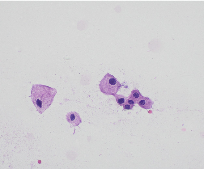 HISTORIA CLINICA Mujer de 66 Años con Hipotiroidismo. Ecografía de Cuello muestra Nódulo Tiroideo izquierdo. TIRADS 4B. Se realiza BACAF de tiroides