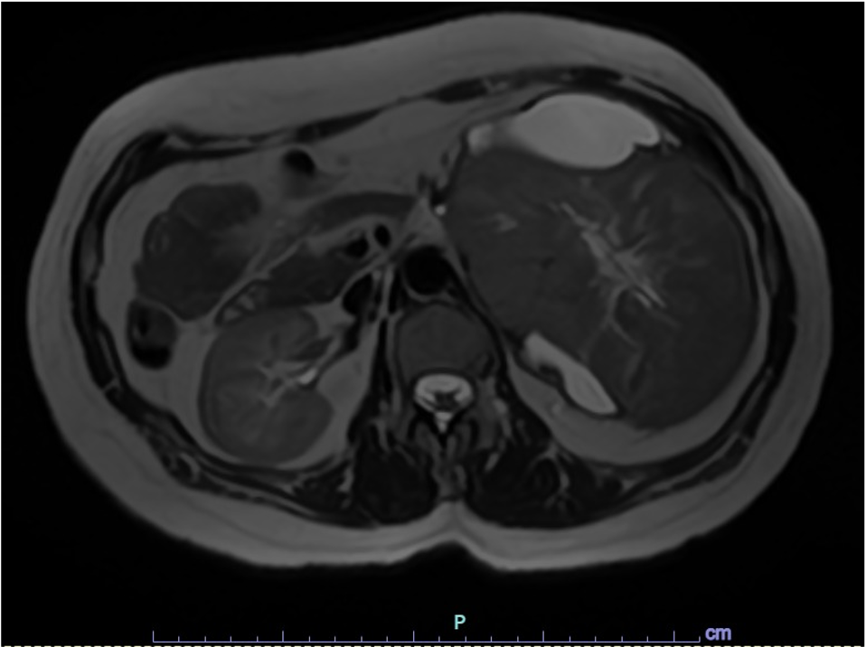 Paciente mujer de 43 años, G0-P000 con antecedentes de hipertensión arterial en tratamiento e historia familiar de cáncer (carcinoma de células de Merkel). Acude por presentar dolor punzante en flanco izquierdo de una semana de evolución. Al examen físico, se palpa masa abdominal móvil y dolorosa. La TC abdominal revela masa sólida ovoidea, de bordes definidos y aspecto encapsulado que mide 139 x 105 mm, asociada a áreas quísticas (Fig 1). Ante estos hallazgos, se realiza nefrectomía radical izquierda. Con la intención de tomar decisiones clínicas inmediatas, se realiza impronta del tumor renal en pieza operatoria observándose células tumorales poligonales con abundante citoplasma eosinofílico granular, membrana citoplasmática bien definida y bordes celulares acentuados. El resultado fue neoplasia de tipo oncocítica que favorece carcinoma cromófobo (Fig 2-5), confirmado histológicamente (Fig 6). Paciente evoluciona favorablemente.