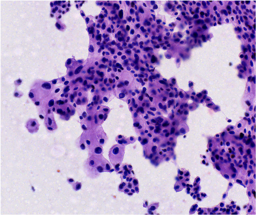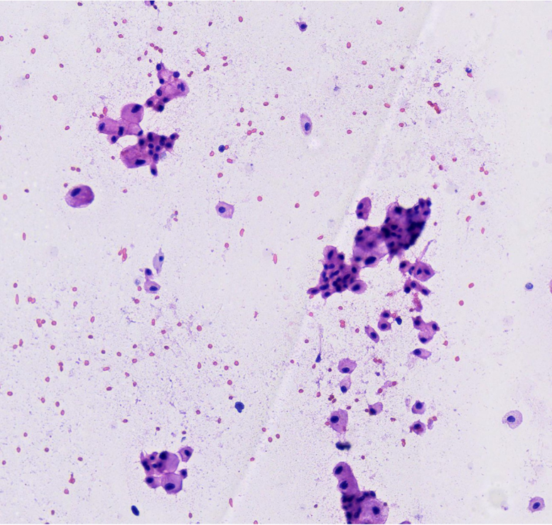 En la impronta citológica, los bordes bien delimitados permitieron orientar nuestro diagnóstico hacia un carcinoma cromófobo. Esta técnica constituye una herramienta diagnóstica útil en el intraoperatorio para toma de decisiones rápidas contribuyendo así a una adecuada planificación quirúrgica y manejo terapéutico del paciente.