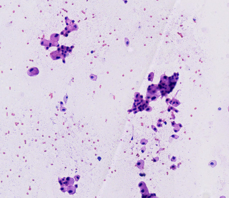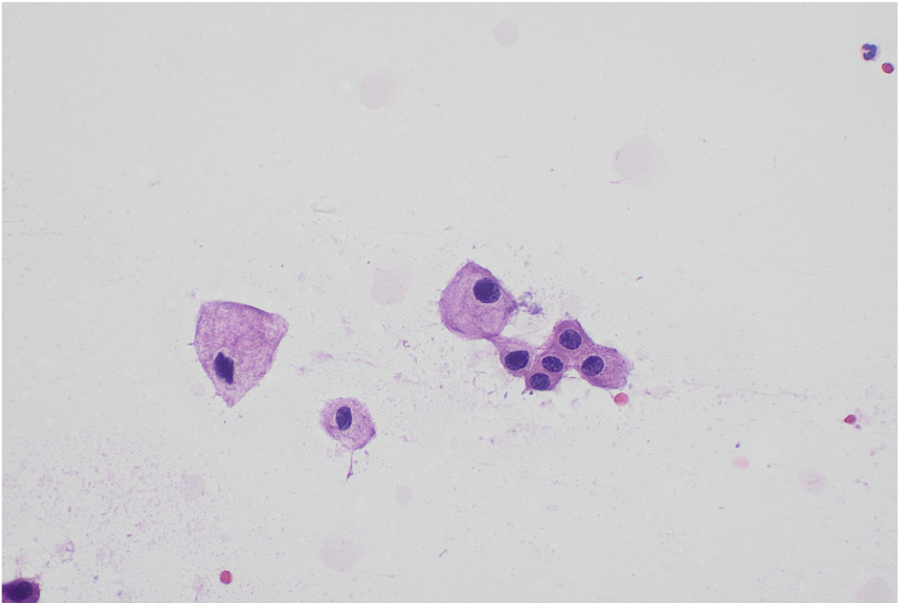 El carcinoma cromófobo es un raro subtipo de carcinoma renal que representa la forma más común de carcinoma en mujeres jóvenes con un promedio de edad de 59 años (rango 17-92).1 Su identificación es fundamental y debe diferenciarse principalmente del carcinoma de células claras eosinofílico y del oncocitoma renal, entidades con tratamiento y pronóstico distinto.2 Aunque el diagnóstico tradicional es histológico luego de una resección quirúrgica, la citología por impronta puede ser de ayuda para tomar decisiones rápidas.